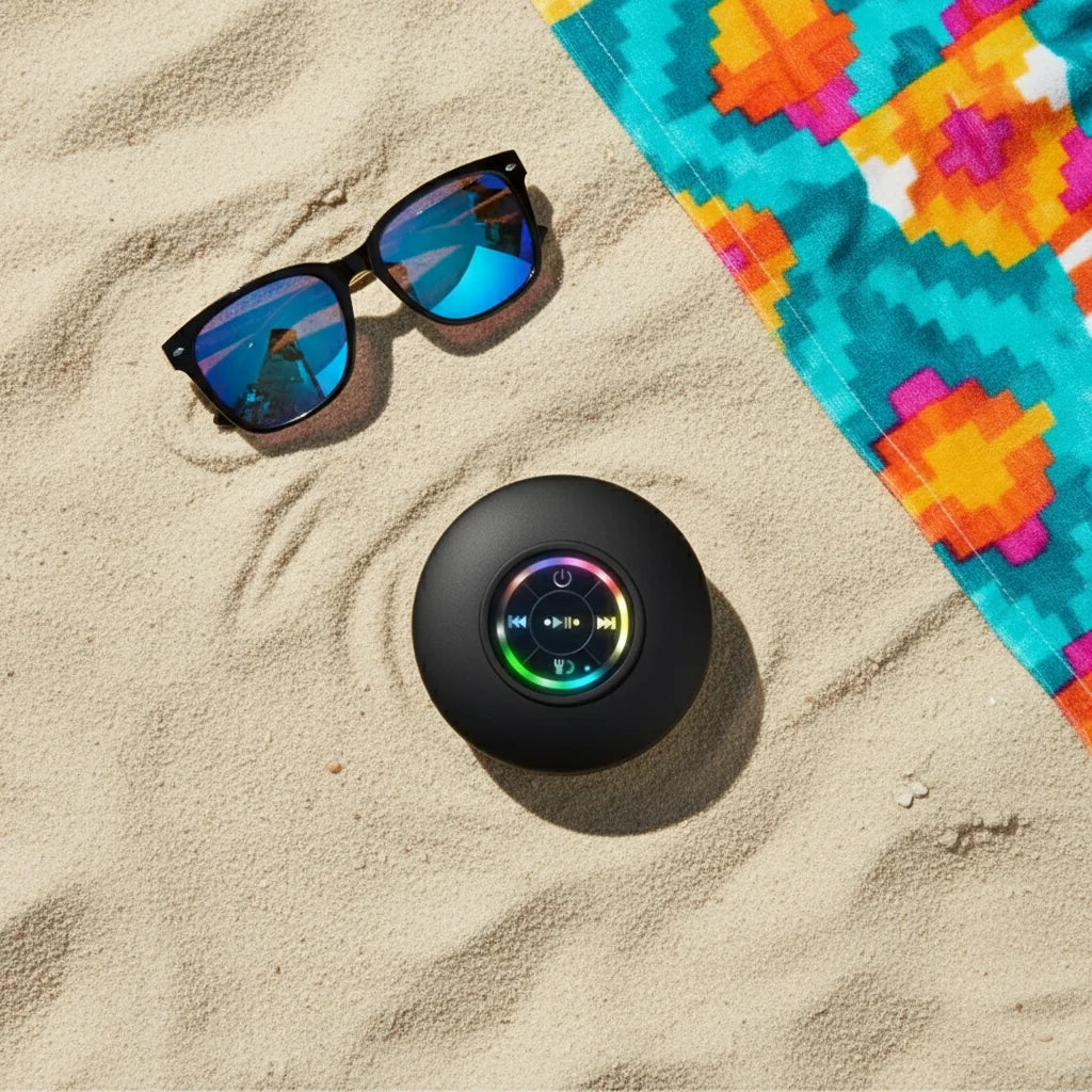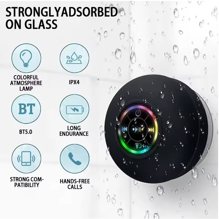 Waterproof Shower Pod Speakers - LED Lights With Suction Cup Attachable To Most Surfaces